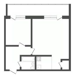 2-комнатная квартира в ЖК "Крылья". Адрес: г. Тюмень, с. Горьковка, ул. Центральная 25к2, этаж 2, номер помещения 35 Площадь квартиры 36.08 м2 . Высота потолка 2,7 м. Однокомнатная квартира с большой кухней-гостиной и ванной комнатой. В прихожей есть ниша под шкаф.