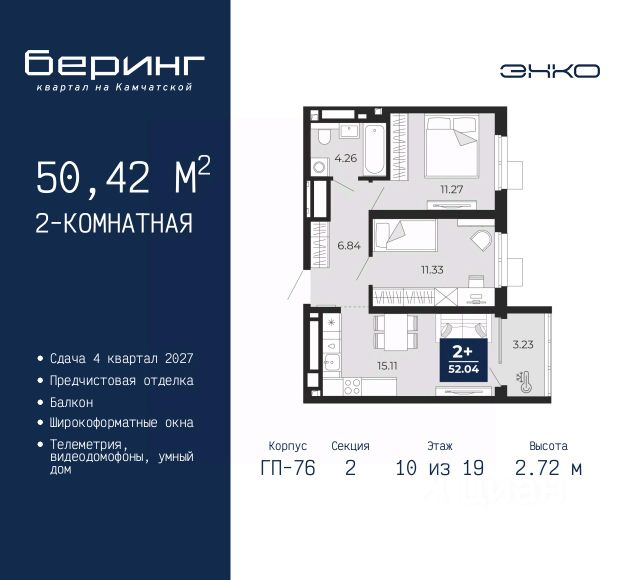 2-комн. квартира от застройщика с предчистовой отделкой в ЖК "Айвазовский City" на 6 этаже. Общая площадь: 48.87 кв.м., жилая: 20.01 кв.м., площадь просторной кухни-столовой: 15.43 кв.м. Комнаты изолированные, все окна выходят на одну сторону. В квартире один совмещенный и один раздельный санузел. Высота потолков 2.7 м. Дом монолитный, многоподъездный, высотой 24 этажа. Квартира находится во 2-й секции в корпусе ГП-12. На этаже 6 квартир. В подъезде 1 пассажирский и 1 грузовой лифт. Окончание строительства - 4 квартал 2028 года. Оформление сделки по договору долевого участия. Новый жилой район располагается в живописном месте на берегу Туры в центральной части города. Принципиально новое пространство для жизни в центре современного города для тех, чьи мечты сбываются, кто нацелен на постоянный рост, перемены к лучшему для себя и своих близких. Каждая деталь Айвазовский City вдохновляет и заряжает на новые свершения: авторская архитектура, сбалансированная продуманная инфраструктура, дизайнерские дворы со спортивными и детскими площадками, парковые зоны с фонтанами, водный канал, украшающий центральный прогулочный маршрут района и многое другое. В 2019 года проект стал лауреатом престижной премии Urban Awards 2019 в номинации "Лучший строящийся региональный жилой комплекс бизнес-класса". Главная особенность Айвазовский City - соседство разных архитектурных школ в рамках одного дома. Изысканная классика, выразительная эклектика и оригинальный модерн - жить в одном из таких домов настоящий повод для гордости. Айвазовский City это идеальное сочетание комфорта, технологий и развитой инфраструктуры. Вход в подъезд возможен с улицы и со двора. Отправляясь на работу или за покупками, жители могут выйти с внешней стороны дома, а для прогулки с ребенком со стороны двора. Экологически чистые материалы и энергосберегающие технологии, качественное освещение общественных зон, видеонаблюдение по всей территории жилого района (в том числе в подъездах, лифтах и в подземном паркинге), закрытые дворы с доступом только для жителей Айвазовский City. Часть домов в Айвазовский City будут оснащены подземным паркингом. Востребованный в нашем климатическом поясе формат хранения автомобилей защитит собственность владельца в любое время года. Аккредитация в банках: ПАО "Газпромбанк", ОАО "Альфа-Банк", ПАО Банк "ВТБ", "Сбербанк России", ПАО Банк "ФК Открытие" и других. #2MvgCe 2-комнатная квартира, примерная площадь 50 м2 в Тюменской области.