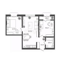 При покупке этой квартиры за наличный расчет предоставляется скидка 5% Прямая продажа от застройщика! Продается двухкомнатная квартира в строящемся ЖК "Меридиан Слобода", срок сдачи: I-кв. 2027, общей площадью 48.51 м², на 4 этаже из 20. Площадь кухни — 17.17 м². "Меридиан Слобода" расположен в южной части (зеленой зоне) Тюменской Слободы рядом со строящимся Комарово парком в границах улиц Заполярная и Спасская. В районе расположены все необходимые объекты социальной инфраструктуры. ЖК "Меридиан Слобода" состоит из двух домов переменной этажности от 15 до 20 с отделкой фасадов разной фактуры. Главная особенность ЖК — свой собственный хвойный сквер прямо во дворе. Территория сквера будет оформлена в минималистичном стиле, главное правило которого сохранение экосистемы и гармоничное встраивание объектов инфраструктуры в природную среду. Здесь будут дорожки из деревянных настилов, зоны отдыха, отель для птиц. Квартиры сдаются с предчистовой отделкой или с ремонтом. О возможности приобретения квартиры с ремонтом уточняйте у менеджеров отдела продаж. Преимущества ЖК: — тёплый тамбур с домофоном на второй двери — дизайнерское оформление подъездов — колясочная и парковка для велосипедов — лапомойка — кладовые на цокольном этаже со входом через подъезд — закрытый двор — зоны для игр и спорта во дворе Продается 2-комнатная квартира 50 м2 в Тюмени.