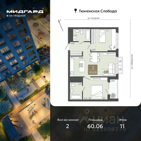 Продается двухкомнатная квартира с предчистовой отделкой в ЖК "Дивный квартал у озера" на 13 этаже. Общая площадь: 59.2 кв.м., жилая: 30.7 кв.м., площадь просторной кухни-столовой: 11.6 кв.м. Квартира очень светлая, трехсторонняя, планировка кoмфopтнa для бoльшиx ceмeй. В квартире одна лоджия, один раздельный санузел. Высота потолков 2.7 м.