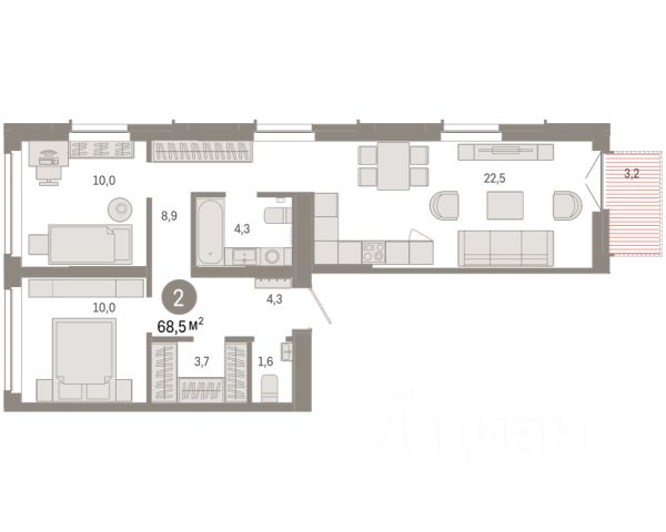 • ✓ В базе Циан 753 2-комнатных квартир 70 м2 в Тюмень