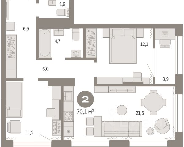 2-комн. квартира в ЖК "Беринг" на 21 этаже. Квартира без отделки, новый собственник может сделать ремонт по своему проекту. Общая площадь: 71.15 кв.м., жилая: 31.03 кв.м., площадь просторной кухни-столовой: 20.6 кв.м. Квартира - распашонка, без проходных комнат, окна выходят на paзные стороны дома. В квартире один балкон, один раздельный санузел. Высота потолков 2.75 м. Дом монолитный, многоподъездный, переменной этажности, от 9 до 21 этажей. Квартира находится в 74.5-й секции высотой 21 этаж в корпусе ГП-74. На этаже 7 квартир. В подъезде 1 пассажирский и 1 грузовой лифт. Окончание строительства - 4 квартал 2025 года. Оформление сделки по договору долевого участия. Подобно знаменитому исследователю, мы чувствуем себя первооткрывателями этой локации. Хотим показать новую суть места, сформировать для вас жизненный опыт, которого ещё не было. Беринг — район зелёного цвета. Беринг — район, который откроется вам с другой стороны. Впечатлит новым уровнем комфорта и качеством жизни. Беринг — открытие на карте города. Первый квартал расположен в районе Тура, в границах улиц: Камчатская Западносибирская Энтузиастов. Вокруг уже есть всё для того, чтобы ежедневная рутина была лишь частью жизни и не доставляла дискомфорта. Школы и детские сады, магазины и аптеки, поликлиника, места для семейного отдыха, пеших и велопрогулок, и даже рыбалки. Масштабное озеленение дворов — визитная карточка ЭНКО и ваш оазис спокойствия, чтобы отвлечься от повседневности. Раскидистые деревья, кустарники, травы и цветы — осталось остановиться, вдохнуть и расслабиться, глядя на эту природную красоту. Стилистика подъездов продолжает концепцию Беринга, вдохновлённого Камчаткой: сдержанный, но при этом впечатляющий дизайн соседствует с удобством и функциональностью. #zU5TEV 2-комнатная квартира, примерная площадь 70 м2 в Тюмени.