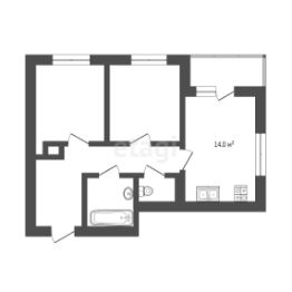 2. Площадь: 53,10 кв.м. + лоджия большая 7,60 кв.м ( кухня 8,5 квм, 31,20 квм)