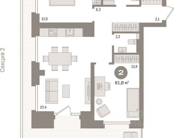 - 2 изолированные комнаты