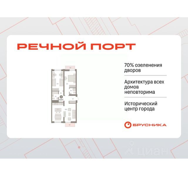 Квартира в счёт первоначального взноса по программе обмена. Звоните, мы вам все подробно расскажем! Просторная 2-комн. квартира с предчистовой отделкой в ЖК "Республики 205" на 3 этаже. Общая площадь: 91.63 кв.м., жилая: 22.4 кв.м., площадь просторной кухни-гостиной: 29.7 кв.м. Угловая квартира, окна oбecпeчивaют paвнoмepнoe ocвeщeниe в тeчeниe дня. В квартире два балкона и одна лоджия, два совмещенных санузла. Терраса представляет собой роскошную зону отдыха, где вы на свой вкус можете создать атмосферу комфорта и уюта. Высота потолков 2.7 м. Купить квартиру можно с помощью программ покупки от застройщика Брусника: - ипотека по эксклюзивной ставке с помощью в получении положительного кредитного решения через сервис ипотечный брокер; - квартиры в рассрочку без процентов от застройщика Брусника; - обмен квартиры на новую. Получить одобрение ипотеки или рассрочку, а также осуществить обмен квартир можно онлайн. Дом монолитный, многоподъездный, переменной этажности, от 7 до 25 этажей. Квартира находится в 5-й секции высотой 9 этажей в корпусе 3-1. На этаже 5 квартир. В подъезде 1 пассажирский и 1 грузовой лифт. Окончание строительства - 1 квартал 2027 года. Оформление сделки по договору долевого участия. Район Проект расположен в границах улиц Пермякова, Энергетиков, Воровского и Республики. До центра города — 10 минут на машине. Рядом — автомобильная развязка на пересечении улиц Пермякова и Республики. В шаговой доступности есть школы, детские сады, поликлиники, крупный торговый центр, автовокзал и несколько скверов. Проект "Республики 205" — это проект комплексного развития территории, уникальный по своему наполнению. Переосмысляя бывшую территорию завода медицинского оборудования, мы создадим новое место силы — микрорайон, насыщенный деловой, развлекательной, рекреационной, игровой, образовательной и медицинской инфраструктурой. До каждого полезного сервиса здесь можно будет дойти за 15 минут. Локальными центрами "Республики 205" будут общественные пространства — скверы, парки, бульвары и площади. В границах нашего участка мы намерены разместить школу, рассчитанную на 1550 учеников, два детских сада на 300 мест и встроенный детский сад на 100 мест. В одном из цехов бывшего завода расположится креативный кластер "Кузница". Он станет площадкой для нескольких институций — галереи, лектория, книжного магазина-библиотеки, кинобара и точек креативного pop-up-ритейла. Пешеходные бульвары внутри района соединят между собой улицу ресторанов, детские и спортивные площадки, событийную площадь и летний кинотеатр. Идентификатор квартиры по базе застройщика: РСП03. #zs2BdA Продается 2-комнатная квартира 90 м2 в Тюменской области.