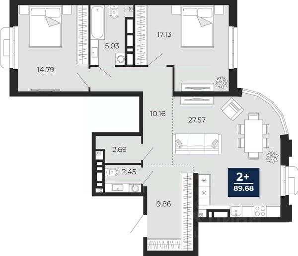 Торопитесь забронировать по этой цене, предложение ограничено! Стоимость квартиры указана со скидкой, ваша экономия составит 1,220,000 руб. Информация по телефону, мы вам все подробно расскажем. Продается 2-комн. квартира от застройщика в ЖК "Айвазовский" на 2 этаже. Квартира без отделки, после получения ключей можно делать ремонт. Общая площадь: 90.06 кв.м., жилая: 42.88 кв.м., площадь просторной кухни-столовой: 23.18 кв.м. Угловая квартира, окна oбecпeчивaют paвнoмepнoe ocвeщeниe в тeчeниe дня. В квартире одна лоджия, два совмещенных санузла. Высота потолков 2.72 м. Дом монолитный, многоподъездный, переменной этажности, от 5 до 21 этажей. Квартира находится в 5-й секции высотой 9 этажей в корпусе ГП-5. На этаже 5 квартир. В подъезде 1 пассажирский и 1 грузовой лифт. Строительство окончено, дом сдан в 4 квартале 2023 года. Оформление сделки по договору купли-продажи. Новый жилой район располагается в живописном месте на берегу Туры в центральной части города. Принципиально новое пространство для жизни в центре современного города для тех, чьи мечты сбываются, кто нацелен на постоянный рост, перемены к лучшему для себя и своих близких. Каждая деталь ЖК "Айвазовский" вдохновляет и заряжает на новые свершения: авторская архитектура, сбалансированная продуманная инфраструктура, дизайнерские дворы со спортивными и детскими площадками, парковые зоны с фонтанами, водный канал, украшающий центральный прогулочный маршрут района и многое другое. В 2019 года проект стал лауреатом престижной премии Urban Awards 2019 в номинации "Лучший строящийся региональный жилой комплекс бизнес-класса". Главная особенность Айвазовский - соседство разных архитектурных школ в рамках одного дома. Изысканная классика, выразительная эклектика и оригинальный модерн - жить в одном из таких домов настоящий повод для гордости. Айвазовский это идеальное сочетание комфорта, технологий и развитой инфраструктуры. Вход в подъезд возможен с улицы и со двора. Отправляясь на работу или за покупками, жители могут выйти с внешней стороны дома, а для прогулки с ребенком со стороны двора. Экологически чистые материалы и энергосберегающие технологии, качественное освещение общественных зон, видеонаблюдение по всей территории жилого района (в том числе в подъездах, лифтах и в подземном паркинге), закрытые дворы с доступом только для жителей Айвазовский. Часть домов в Айвазовский будут оснащены подземным паркингом. Востребованный в нашем климатическом поясе формат хранения автомобилей защитит собственность владельца в любое время года. Аккредитация в банках: "Сбербанк России", ОАО "Альфа-Банк", ПАО Банк "ВТБ", ПАО "Газпромбанк", ПАО "Промсвязьбанк" и других. #Ic4Aaz Продается 2-комнатная квартира 90 м2 в Тюменской области.