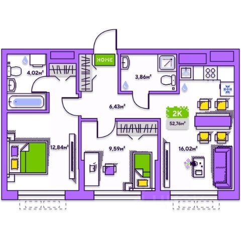 19-этажная архитектурная доминанта с эффектом паруса и камерная секция: французские балконы, сити-хаусы на 1-м этаже, 9 этажей в доме. Уступчатая структура формирует динамичный силуэт — новый акцент ул. Полевая. Металлические балконы создают градиент от тёмного к светлому, большие окна — панорамные виды на город.