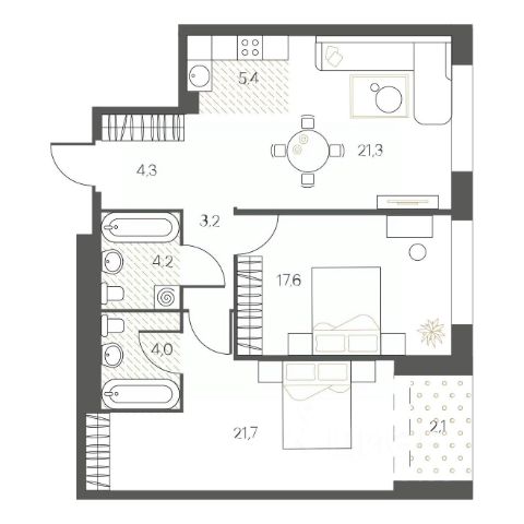 В апартаментах полностью выкуплена сантехника, плитка, двери и паркет на пол. Водоснабжение и водоотведение выведено, весь свет протянут. В стоимость также входит паркинг и дизайн-проект.