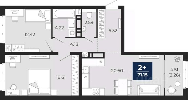 Квартира располагается в ГК "Чистые Пруды" от "Паритет девелопмент". Это флагманский проект компании в Тюмени. Расположение вдали от шумных улиц и оживленного центра создает ощущение жизни на природе и окружает тишиной и спокойствием. Есть вся необходимая социальная и коммерческая инфраструктура: магазины и сфера услуг на первых этажах. Школы, сады, поликлиника, парки в шаговой доступности. Квартал строится в районе Новой Лесобазы. Рядом выезд на объездную, что существенно экономит время. Поездка до центра города на автомобиле занимает 15-20 минут. Городские кварталы "Чистые Пруды" сформирован из домов переменной этажности и многоуровневых паркингов. Ввод 1 очереди строительства запланирован на II кв. 2028 года. Всё благоустройство квартала представлено двумя функциональными зонами: приватная внутри дворовая и общественная. Каждый закрытый двор имеет выход на единую променадную зону - бульвар. Концепция благоустройства основана на принципе модульности, что формирует основную идею приватности. Приватность проекта подчеркивает его особенный климат внутри. Модульное благоустройство позволит максимально эффективно использовать пространство двора и удовлетворить потребности различных категорий жителей. В квартирах базово выполнена улучшенная черновая отделка, которая включает в себя: выровненные стены, стяжка пола с шумоизоляцией, горизонтальная разводка отопления, установлены счетчики с телеметрией, окна с 5-камерным профилем и надежные входные двери. При желании можно добавить ремонт от застройщика и включить его в стоимость ипотеки, что позволит сэкономить на стройматериалах и переехать сразу после получения ключей. Характеристики квартиры: этаж - 2 количество комнат - 3 номер помещения - 280 площадь квартиры - 64,9 кв.мГармоничные пропорции и большие окна наполняют пространство светом, создавая уютную атмосферу. Умное зонирование позволяет удобно организовать как рабочую, так и жилую зоны, что особенно важно для современных жителей. Санузел спроектирован с учетом всех потребностей: здесь есть ванна и место для стиральной машины. Каждый метр квартиры используется с максимальной эффективностью, что делает эту планировку отличным выбором для тех, кто ценит комфорт и удобство.