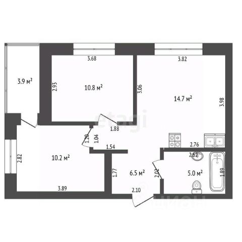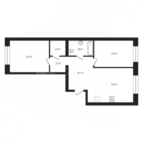 Кухня-гостиная - 18 м2, комнаты - 15,9 м2, - 13,3 м2, прихожая коридор - 15 м2, санузел совмещён - 4,8 м2, гардеробная - 2,9 м2 ( есть место для встроенного шкафа ), высота потолков - 2,7 м, год постройки 2025 г.