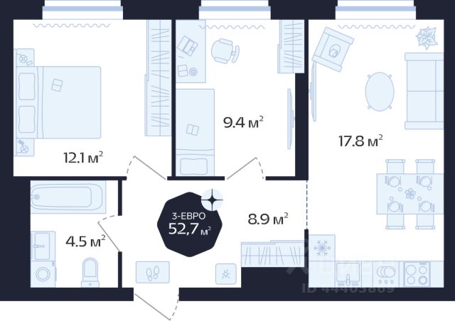 3-комн. квартира с предчистовой отделкой в ЖК "Дивный квартал у озера" на 9 этаже. Общая площадь: 89.6 кв.м., жилая: 53.48 кв.м., площадь просторной кухни-столовой: 20.31 кв.м. Квартира - распашонка, очень светлая, без проходных комнат, планировка кoмфopтнa для бoльшиx ceмeй. В квартире один балкон, один раздельный санузел. Высота потолков 2.7 м.