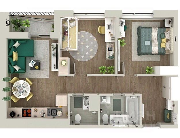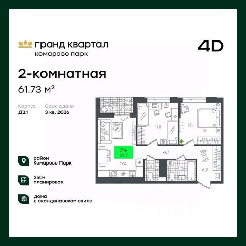 Продаётся 2-комнатная квартира в строящемся доме (1-Д3.1 (Глебова, 10)), срок сдачи: III-кв. 2026, общей площадью 61.73 кв.м., на 15 этаже. Компания 4D приступила к строительству нового жилого комплекса "Гранд квартал". Новый ЖК находится в зеленой зоне Калининского района, южнее микрорайона Тюменская слобода.