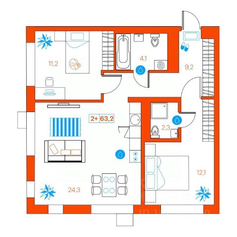 Продаётся квартира площадью 60.50 м2 в жилом комплексе "Айрис". Квартира находится на 2 этаже дома, который будет введен в эксплуатацию в 3 квартале 2027 года. Жилая площадь квартиры 16.50 м2, площадь просторной кухни — 16.70 м2. Среди особенностей планировки — изолированные комнаты с окнами на одну сторону, 1 совмещённый санузел. Жилой комплекс "Айрис" — это: фиджитал-квартал в Тюмени дома высотой от 7 до 25 этажей квартиры с системой "Умный дом" цифровые технологии как элемент благоустройства Срок сдачи — III кв. 2027 Окружение В нескольких минутах ходьбы от дома — парк "Комарово" с волейбольной площадкой, открытым кинотеатром, зонами для барбекю и катком. Неподалеку от Airis находится центр иппотерапии, где можно покататься на лошадях и взять уроки верховой езды. На территории Airis появится собственный парк с прогулочными аллеями. Инфраструктура В 5-10 минутах от квартала открыты 2 детских сада и гимназия. На шопинг можно отправиться в торговые комплексы "Колумб" и "Кристалл" — они находятся недалеко от дома. Благоустройство Уютный двор — приватное пространство для жителей. В беседках можно будет почитать книгу в тишине, а в тени деревьев устроиться на пикник. На крыше многоуровневого паркинга будет лаунж-зона с кинотеатром, баскетбольная площадка и воркаут-пространство, где можно позаниматься с виртуальным тренером — достаточно отсканировать код. Лобби Интерьеры лобби выполнены в пастельных тонах с элементами фиджитал-решений. Для отдыха и ожидания гостей создана лаунж-зона. Также есть гостевые санузлы. Колясочные Возвращайтесь налегке после прогулки с малышом — оставить коляску можно в специальном помещении на первом этаже. Кладовые Для сезонных и габаритных вещей предусмотрены отдельные кладовые на цокольном этаже. В каждом помещении уже проведено электричество и выполнена стяжка пола. Паркинг На территории — два многоуровневых наземных паркинга. Один из них примыкает к домам — из него можно напрямую пройти в парадные. Планировки Планировки квартала — от компактной студии до сити-хауса с собственным палисадником — соответствуют любым жизненным сценариям. Можно выбрать квартиры с террасами и готовыми дизайнерскими интерьерами.