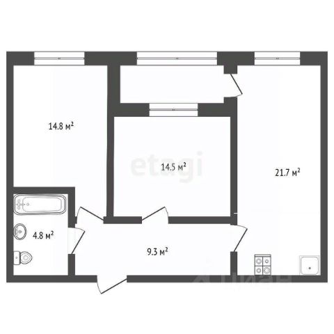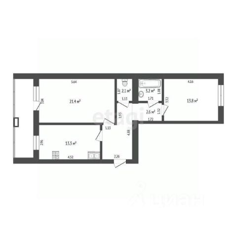 - Действительно просторная двухкомнатная квартира с самостоятельной кухней-гостиной на площади 82.8 м2;