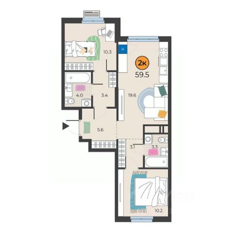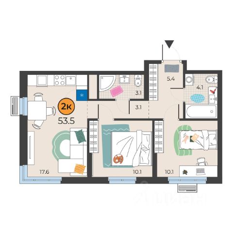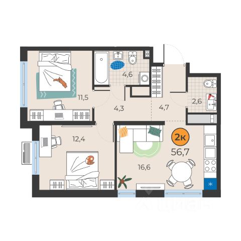 лоджия - 2.6 кв. м.,