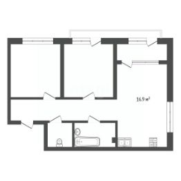 Планировка квартиры отличается продуманностью: две изолированные спальни площадью по 13 кв. м. обеспечивают приватность, а просторная кухня-гостиная почти 17 кв. м. становится естественным центром для жизни семьи и приема гостей.