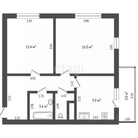 балкон - 4,2 кв.м.,