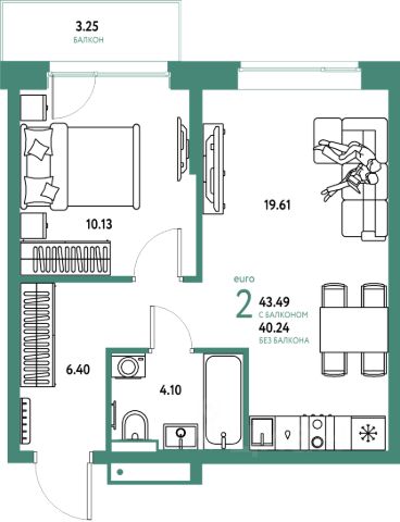 - кухня-гостиная и спальня с 2-мя точками света, даже в пасмурную погоду в квартире будет светло и уютно;