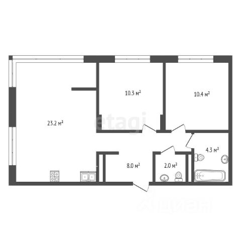 2-комнатная квартира в ЖК "Крылья". Адрес: г. Тюмень, с. Горьковка, ул. Центральная 25к2, этаж 2, номер помещения 35 Площадь квартиры 36.08 м2 . Высота потолка 2,7 м. Однокомнатная квартира с большой кухней-гостиной и ванной комнатой. В прихожей есть ниша под шкаф.