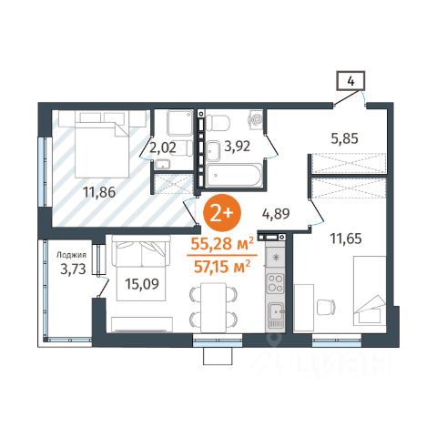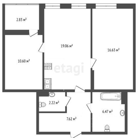 Квартира обладает рациональной планировкой, позволяющей эффективно использовать каждый квадратный метр.