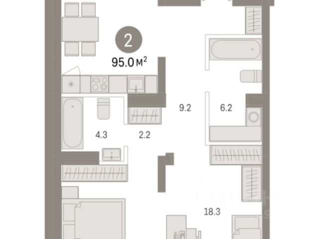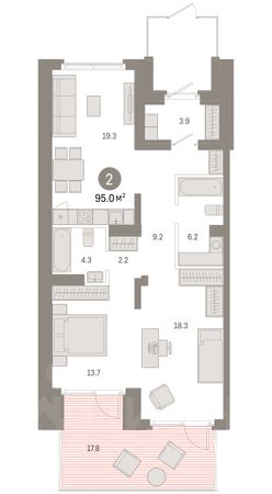 Квартира с кухней-гостиной и двумя спальнями в Октябрьском на Туре. Особенности планировки: второй санузел, гардеробная, окна в пол, постирочная, свободная планировка, терраса. квартиры в нашей базе: КО-07.2-1-1.1.1. Район Проект расположен на берегу реки, в одном из самых живописных и экологичных районов Тюмени. За последние годы облик района изменился. По соседству с индивидуальной застройкой выросли многоквартирные дома. При проектировании "Октябрьского на Туре" нашей приоритетной задачей стало сохранение природного ландшафта: мы постарались деликатно вписать в него современную архитектуру. Квартал удачно расположен с точки зрения дорожной инфраструктуры. На автомобиле путь до центра города составит 15 минут. Добраться до набережной и главных тюменских достопримечательностей можно и на общественном транспорте. В пешей доступности находится автобусная остановка. Проект По мастер-плану здесь будет восемь домов. Ядро застройки составляют замкнутые кварталы переменной этажности. Их высотность понижается по мере приближения к реке. На углах участка мы разместили башни-доминанты. Одной из достопримечательностей квартала станет парк на Туре — здесь появится зеленая зона протяженностью около 6 километров для пеших и велопрогулок. Смысловая ось квартала — широкая главная улица с высаженными вдоль неё высокими деревьями. Они создают тень и работают как шумо- и пылезащитные экраны. Это место сосредоточения основных пешеходных и транспортных потоков, на сторону которых мы ориентировали большинство коммерческих помещений. Отсюда жители могут свернуть на тихие соседские улицы и попасть на внутриквартальную площадь — ещё одну точку притяжения. #If5SVI