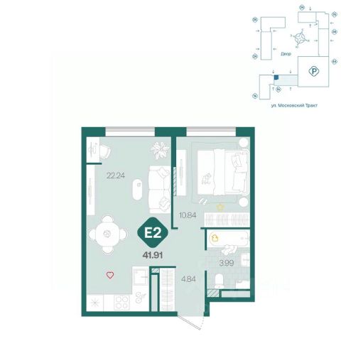 Квартира с кухней-гостиной и двумя спальнями в Октябрьском на Туре. Особенности планировки: отдельный вход, предчистовая отделка, разнесённые спальни. квартиры в нашей базе: ОКТ-08-2-2.1.3. Район Проект расположен на берегу реки, в одном из самых живописных и экологичных районов Тюмени. За последние годы облик района изменился. По соседству с индивидуальной застройкой выросли многоквартирные дома. При проектировании "Октябрьского на Туре" нашей приоритетной задачей стало сохранение природного ландшафта: мы постарались деликатно вписать в него современную архитектуру. Квартал удачно расположен с точки зрения дорожной инфраструктуры. На автомобиле путь до центра города составит 15 минут. Добраться до набережной и главных тюменских достопримечательностей можно и на общественном транспорте. В пешей доступности находится автобусная остановка. Проект По мастер-плану здесь будет восемь домов. Ядро застройки составляют замкнутые кварталы переменной этажности. Их высотность понижается по мере приближения к реке. На углах участка мы разместили башни-доминанты. Одной из достопримечательностей квартала станет парк на Туре — здесь появится зеленая зона протяженностью около 6 километров для пеших и велопрогулок. Смысловая ось квартала — широкая главная улица с высаженными вдоль неё высокими деревьями. Они создают тень и работают как шумо- и пылезащитные экраны. Это место сосредоточения основных пешеходных и транспортных потоков, на сторону которых мы ориентировали большинство коммерческих помещений. Отсюда жители могут свернуть на тихие соседские улицы и попасть на внутриквартальную площадь — ещё одну точку притяжения. #ZZduAf