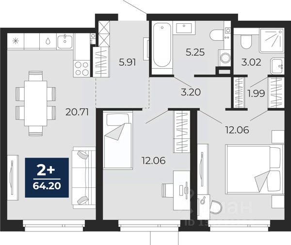 • ✓ В базе Циан 191 2-комнатных квартир на 1 этаже в округе Калининский в городе Тюмень