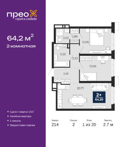 Квартира с кухней-гостиной и двумя спальнями в Октябрьском на Туре. Особенности планировки: отдельный вход, предчистовая отделка, разнесённые спальни. квартиры в нашей базе: ОКТ-08-2-2.1.3. Район Проект расположен на берегу реки, в одном из самых живописных и экологичных районов Тюмени. За последние годы облик района изменился. По соседству с индивидуальной застройкой выросли многоквартирные дома. При проектировании "Октябрьского на Туре" нашей приоритетной задачей стало сохранение природного ландшафта: мы постарались деликатно вписать в него современную архитектуру. Квартал удачно расположен с точки зрения дорожной инфраструктуры. На автомобиле путь до центра города составит 15 минут. Добраться до набережной и главных тюменских достопримечательностей можно и на общественном транспорте. В пешей доступности находится автобусная остановка. Проект По мастер-плану здесь будет восемь домов. Ядро застройки составляют замкнутые кварталы переменной этажности. Их высотность понижается по мере приближения к реке. На углах участка мы разместили башни-доминанты. Одной из достопримечательностей квартала станет парк на Туре — здесь появится зеленая зона протяженностью около 6 километров для пеших и велопрогулок. Смысловая ось квартала — широкая главная улица с высаженными вдоль неё высокими деревьями. Они создают тень и работают как шумо- и пылезащитные экраны. Это место сосредоточения основных пешеходных и транспортных потоков, на сторону которых мы ориентировали большинство коммерческих помещений. Отсюда жители могут свернуть на тихие соседские улицы и попасть на внутриквартальную площадь — ещё одну точку притяжения. #2ZduAf