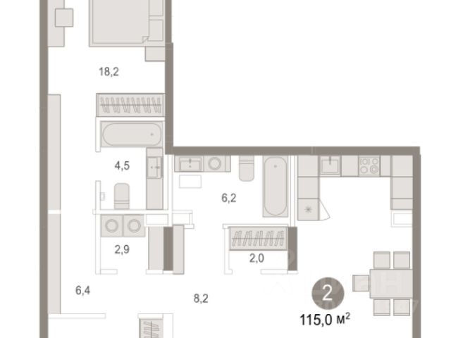 2-комн. квартира с предчистовой отделкой в ЖК "Республики 205" на 1 этаже. Общая площадь: 78.16 кв.м. Высота потолков 2.7 м.