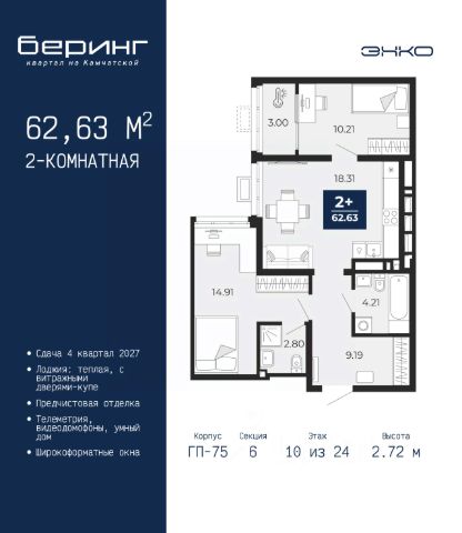 Двухкомнатная квартира с предчистовой отделкой в ЖК "Прео" на 10 этаже. Общая площадь: 66.5 кв.м., жилая: 28.32 кв.м., площадь просторной кухни-столовой: 18.62 кв.м. Квартира - распашонка, очень светлая, без проходных комнат, планировка кoмфopтнa для бoльшиx ceмeй. В квартире один балкон, один раздельный санузел. Высота потолков 2.7 м. Дом монолитный, черырехподъездный, переменной этажности, от 14 до 21 этажей. Квартира находится во 2-й секции высотой 21 этаж в корпусе 211. На этаже 10 квартир. В подъезде 1 пассажирский и 1 грузовой лифт. Окончание строительства - 4 квартал 2026 года. Оформление сделки по договору долевого участия. Преображенский — один из самых привлекательных районов для жизни! Это полностью самостоятельный жилой район с точки зрения инфраструктуры. Преображенский находится между Московским и Червишевским трактами в квартале улиц Закалужская — Вьюжная — Александра Протозанова. Не нужно ждать, когда появится инфраструктура — переезжайте на всё готовое. Вблизи расположены действующие школа и детский сад. В этом году откроется еще один сад, а в следующем году — школа. По соседству с Преображенским запланировано строительство городского парка "Комарово" площадью 38 гектар. За 10 минут можно доехать на автомобиле до крупных ТРЦ: "Лента", "Кристалл", "Леруа Мерлен", "Метро" и "Ашан". С 2018 года в районе открыт Соседский центр — пространство, созданное для формирования добрососедской среды, совместного досуга, общения и реализации соседских инициатив. Здесь проходят встречи соседей, а также сами жители района организовывают мероприятия. Организатором такого события может стать любой желающий. В квартирах выполнена качественная предчистовая отделка. Гладкие стены с финишным выравниванием по маякам. Ровный потолок для установки натяжного потолка. Установлены пятикамерные окна с двойным стеклопакетом (3 стекла). Дизайнерские холлы с видеонаблюдением, безбарьерным и прозрачным входом всегда светло и спокойно. На первом этаже есть просторные колясочные, где все жители могут оставлять свои коляски и велосипеды. В Преображенском есть всё, что нужно для активного отдыха и занятий спортом. Мы сделали большое футбольное поле с безопасным покрытием. Также установили хоккейный корт, который оборудован по всем необходимым стандартам. Во дворах можно делать упражнения на специальных площадках с турниками. Весь район мы обустроили велодорожками, которые связаны в единый маршрут. У нас есть сухие фонтаны, бьющие из земли, деревья, веревки, сетки, скалодром, газон, песок и резинка — осталось просто дать своему ребенку право на свободную игру. По-настоящему хорошие дворы — это те, которые дети предпочитают соцсетям и телевизору. Аккредитация в банках: "Сбербанк России", ПАО "Банк Уралсиб", ПАО "Газпромбанк", ПАО Банк "ВТБ", ОАО "Альфа-Банк" и других. #zMe0Uu