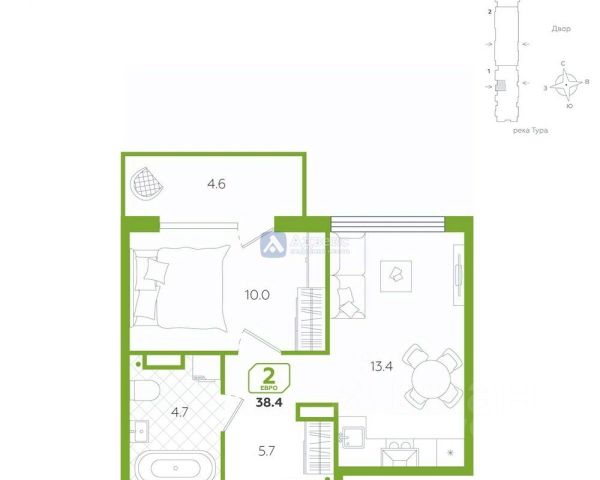 Двухкомнатная квартира от застройщика с предчистовой отделкой в ЖК "Дивный квартал у озера" на 10 этаже. Общая площадь: 59.8 кв.м., жилая: 24.8 кв.м., площадь просторной кухни-столовой: 19.9 кв.м. Угловая квартира, окна oбecпeчивaют paвнoмepнoe ocвeщeниe в тeчeниe дня. В квартире одна лоджия, один совмещенный и один раздельный санузел. Высота потолков 2.7 м. Квартира будет сдаваться с предчистовой отделкой White Box: выровнены и оштукатурены стены, проведено электричество и отопление, установлены радиаторы. Вы также можете приобрести квартиру с ремонтом от застройщика, представленным в трех цветовых решениях Scandi, Wood и Coffee и включающим: ламинат, обои под покраску, двери, натяжной потолок, санузел с сантехникой. При желании вы можете заказать отделку под ключ, варианты возможных решений представлены в альбоме фотографий. Дом монолитный, трехподъездный, переменной этажности, от 9 до 17 этажей. Квартира находится в 1-й секции высотой 17 этажей в корпусе ГП-6. На этаже 8 квартир. В подъезде 1 пассажирский и 1 грузовой лифт. Окончание строительства - 4 квартал 2025 года. Оформление сделки по договору долевого участия. "Дивный квартал у озера" современный жилой квартал, удобно расположенный в 10-ти минутах от центра Тюмени, в уютном районе рядом с зеленым массивом и озером Алебашево. Комплекс находится между улицами Мельникайте и Алебашевская, что обеспечивает его хорошую транспортную доступность до центра на автомобиле всего 10 минут. Рядом с комплексом расположен Лесопарк имени Гагарина, экзотический Парк дружбы между Россией и Республикой Корея. "Дивный квартал у озера" объединяет архитектуру современной городской застройки и природную эстетику. Уютные дворы жилого комплекса будут не только безопасными, но и тихими. Закрытая территория надёжно защищена от шума и посторонних глаз. Здесь будут места для отдыха, детские площадки, зоны для выгула собак. В холлах первого этажа расположены мягкая зона ожидания, общественные санузлы и просторная колясочная. Квартал будет располагать богатой инфраструктурой: на первых этажах домов разместятся магазины, пекарни, кофейни, пункты выдачи, аптеки, детские центры, цветочные салоны и многое другое, что сделает жизнь поистине комфортной. В комплексе есть теплый подземный паркинг и кладовые. #ZmgaeO