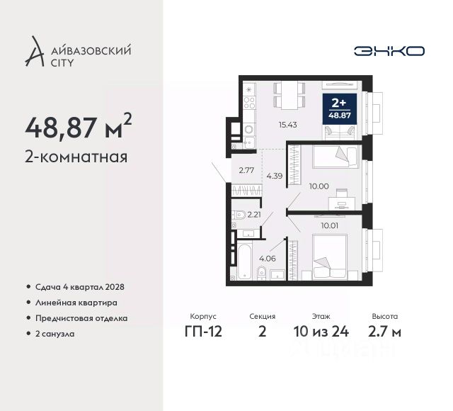 Квартира в счёт первоначального взноса по программе обмена. Информация по телефону, наши менеджеры вам все расскажут! 2-комн. квартира с предчистовой отделкой в ЖК "Зарека" на 10 этаже. Общая площадь: 73.58 кв.м., жилая: 27 кв.м., площадь просторной кухни-гостиной: 24 кв.м. Квартира угловая, идеально подойдет любителям тишины и панорамных видов. В квартире один балкон, два совмещенных санузла. Высота потолков 2.7 м. Дом монолитный, многоподъездный, переменной этажности, от 6 до 16 этажей. Квартира находится в 1-й секции высотой 16 этажей в корпусе 5-2. На этаже 8 квартир. В подъезде 1 пассажирский и 1 грузовой лифт. Окончание строительства - 4 квартал 2026 года. Оформление сделки по договору долевого участия. Продаётся с паркингом. Квартира с кухней-гостиной и двумя спальнями в жилом районе "Зарека". Особенности планировки: гардеробная, разнесённые спальни, предчистовая отделка, мастер-спальня, балкон. квартиры в нашей базе: ЗРК05.2-Ж1.10.2. Проект На планировочную структуру "Зареки" повлияла близость к автомобильному мосту Челюскинцев. Мы расположили жилые здания так, чтобы они постепенно удалялись от проезжей части. Приём напоминает лесенку: чем сильнее мост возвышается над участком застройки, тем дальше по отношению к нему стоят дома. Этот ступенчатый сдвиг позволил нам сформировать буфер между кварталами и оживлённой магистралью. Мы намерены высадить здесь высокие деревья и создать дополнительную защиту от дорожных шума и пыли. В границах нашего участка мы намерены разместить школу и два встроенных детских сада на 135 и 150 мест. Общественные пространства С севера на юг территорию будет пронизывать пешеходный бульвар. Мы мыслим это общественное пространство как главный центр притяжения. На нём будут сосредоточены основные детские игровые и спортивные зоны, места для встреч и спокойного отдыха. Он также сыграет роль мостика, ведущего к другим нашим проектам — "Европейскому кварталу" и "Дому у озера". Одна из базовых идей мастер-плана касается береговой линии. Сегодня озеленение этой территории носит стихииныи характер, а прямому доступу к Туре препятствует дамба. Мы хотим благоустроить пространства у воды и открыть их для людей. Архитекторы спроектировали систему многоярусных троп и спусков к реке, смотровые площадки и места для активного отдыха и пикников. #24C6sO