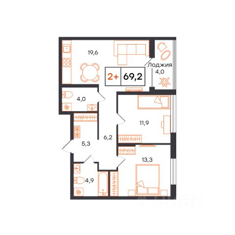 Квартира с кухней-гостиной и двумя спальнями в Октябрьском на Туре. Особенности планировки: гардеробная, лоджия, мастер-спальня, предчистовая отделка. квартиры в нашей базе: ОКТ09-Ж1.10.8. Район Проект расположен на берегу реки, в одном из самых живописных и экологичных районов Тюмени. За последние годы облик района изменился. По соседству с индивидуальной застройкой выросли многоквартирные дома. При проектировании "Октябрьского на Туре" нашей приоритетной задачей стало сохранение природного ландшафта: мы постарались деликатно вписать в него современную архитектуру. Квартал удачно расположен с точки зрения дорожной инфраструктуры. На автомобиле путь до центра города составит 15 минут. Добраться до набережной и главных тюменских достопримечательностей можно и на общественном транспорте. В пешей доступности находится автобусная остановка. Проект По мастер-плану здесь будет восемь домов. Ядро застройки составляют замкнутые кварталы переменной этажности. Их высотность понижается по мере приближения к реке. На углах участка мы разместили башни-доминанты. Одной из достопримечательностей квартала станет парк на Туре — здесь появится зеленая зона протяженностью около 6 километров для пеших и велопрогулок. Смысловая ось квартала — широкая главная улица с высаженными вдоль неё высокими деревьями. Они создают тень и работают как шумо- и пылезащитные экраны. Это место сосредоточения основных пешеходных и транспортных потоков, на сторону которых мы ориентировали большинство коммерческих помещений. Отсюда жители могут свернуть на тихие соседские улицы и попасть на внутриквартальную площадь — ещё одну точку притяжения. #Zs7EsC