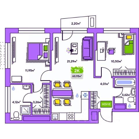 Квартира находится на среднем, комфортном 6 этаже. Это эксклюзивные квартиры, так как лоджия ( 9 м2) имеет полностью панорамное остекление, с нее вы можете просматривать реку, по которой курсируют прогулочные кораблики и весь пешеходный бульвар.