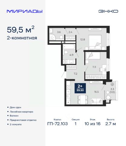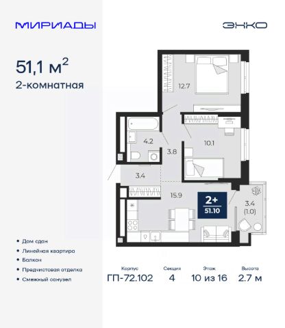 Двухкомнатная квартира от застройщика с предчистовой отделкой в ЖК "Республики 205" на 10 этаже. Общая площадь: 57.41 кв.м. Высота потолков 2.7 м. Купить квартиру можно с помощью программ покупки от застройщика Брусника: - ипотека по эксклюзивной ставке с помощью в получении положительного кредитного решения через сервис ипотечный брокер; - квартиры в рассрочку без процентов от застройщика Брусника; - обмен квартиры на новую. Получить одобрение ипотеки или рассрочку, а также осуществить обмен квартир можно онлайн. Дом монолитный, многоподъездный, переменной этажности, от 7 до 25 этажей. Квартира находится в 1-й секции высотой 25 этажей в корпусе 3-1. На этаже 8 квартир. В подъезде 2 пассажирских и 1 грузовой лифт. Окончание строительства - 1 квартал 2027 года. Оформление сделки по договору долевого участия. Район Проект расположен в границах улиц Пермякова, Энергетиков, Воровского и Республики. До центра города — 10 минут на машине. Рядом — автомобильная развязка на пересечении улиц Пермякова и Республики. В шаговой доступности есть школы, детские сады, поликлиники, крупный торговый центр, автовокзал и несколько скверов. Проект "Республики 205" — это проект комплексного развития территории, уникальный по своему наполнению. Переосмысляя бывшую территорию завода медицинского оборудования, мы создадим новое место силы — микрорайон, насыщенный деловой, развлекательной, рекреационной, игровой, образовательной и медицинской инфраструктурой. До каждого полезного сервиса здесь можно будет дойти за 15 минут. Локальными центрами "Республики 205" будут общественные пространства — скверы, парки, бульвары и площади. В границах нашего участка мы намерены разместить школу, рассчитанную на 1550 учеников, два детских сада на 300 мест и встроенный детский сад на 100 мест. В одном из цехов бывшего завода расположится креативный кластер "Кузница". Он станет площадкой для нескольких институций — галереи, лектория, книжного магазина-библиотеки, кинобара и точек креативного pop-up-ритейла. Пешеходные бульвары внутри района соединят между собой улицу ресторанов, детские и спортивные площадки, событийную площадь и летний кинотеатр. Идентификатор квартиры по базе застройщика: РСП03. #zmA6M3