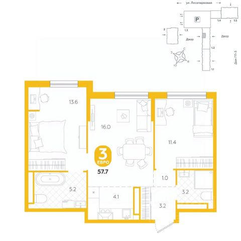 Спешите оформить бронирование на этих условиях! Предложение ограничено! Стоимость квартиры указана со скидкой, ваша экономия составит 431,960 RUB. Звоните, наши менеджеры вам все расскажут! Двухкомнатная квартира с предчистовой отделкой в ЖК "Мириады" на 10 этаже. Общая площадь: 59.5 кв.м., жилая: 23.9 кв.м., площадь просторной кухни-столовой: 16.5 кв.м. Комнаты изолированные, все окна выходят на одну сторону. В квартире один балкон, два совмещенных санузла. Высота потолков 2.7 м. Дом монолитный, трехподъездный, переменной этажности, от 14 до 16 этажей. Квартира находится в 1-й секции высотой 16 этажей в корпусе ГП-72.103. На этаже 8 квартир. В подъезде 1 пассажирский и 1 грузовой лифт. В настоящее время строительство завершено, дом сдан в 4 квартале 2025 года. Оформление сделки по договору купли-продажи. Вселенная бесконечных историй. Ранее невиданный Тюмени масштаб: территория 240 гектаров и 1 650 000 м² застройки. Мириады это город масштабных перемен и больших возможностей. Город зеленых рощ и зеркальных озер. Город для работы, учебы и развлечений. Город для детей и их родителей. Город для всех и каждого. Проект расположен в районе Мыс рядом с ТРЦ "Тюмень Сити Молл" в границах улицы Тимофея Чаркова, Тобольского тракта и объездной дороги. Срок полного освоения территории - до 2034 года. #2mBwUi