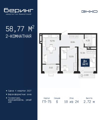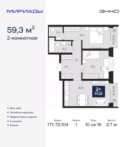 Торопитесь оформить бронирование на этих условиях, период предложения ограничен! Стоимость квартиры указана со скидкой, ваша экономия составит 1,229,349 руб. Звоните, мы вам все подробно расскажем. Продается двухкомнатная квартира от застройщика с предчистовой отделкой в ЖК "Мириады" на 10 этаже. Общая площадь: 53.5 кв.м. Высота потолков 2.7 м. Дом монолитный, многоподъездный, переменной этажности, от 14 до 16 этажей. Квартира находится в 4-й секции высотой 16 этажей в корпусе ГП-72.102. На этаже 6 квартир. В подъезде 1 пассажирский и 1 грузовой лифт. На сегодняшний день строительство окончено, дом сдан в 4 квартале 2025 года. Оформление сделки по договору купли-продажи. Вселенная бесконечных историй. Ранее невиданный Тюмени масштаб: территория 240 гектаров и 1 650 000 м² застройки. Мириады это город масштабных перемен и больших возможностей. Город зеленых рощ и зеркальных озер. Город для работы, учебы и развлечений. Город для детей и их родителей. Город для всех и каждого. Проект расположен в районе Мыс рядом с ТРЦ "Тюмень Сити Молл" в границах улицы Тимофея Чаркова, Тобольского тракта и объездной дороги. Срок полного освоения территории - до 2034 года. #zMDFDb