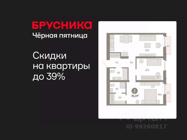 Квартира в счёт первоначального взноса по программе обмена. Информация по телефону, наши менеджеры вам все расскажут! Продается двухкомнатная квартира от застройщика с предчистовой отделкой в ЖК "Республики 205" на 10 этаже. Общая площадь: 76.11 кв.м., жилая: 29.2 кв.м., площадь просторной кухни-гостиной: 23.5 кв.м. Комнаты изолированные, все окна выходят на одну сторону. В квартире два балкона, два совмещенных санузла. Высота потолков 2.7 м. Купить квартиру можно с помощью программ покупки от застройщика Брусника: - ипотека по эксклюзивной ставке с помощью в получении положительного кредитного решения через сервис ипотечный брокер; - квартиры в рассрочку без процентов от застройщика Брусника; - обмен квартиры на новую. Получить одобрение ипотеки или рассрочку, а также осуществить обмен квартир можно онлайн. Дом монолитный, многоподъездный, переменной этажности, от 7 до 16 этажей. Квартира находится в 3-й секции высотой 16 этажей в корпусе 2. На этаже 7 квартир. В подъезде 2 грузовых лифта. Начало строительства - 1 квартал 2024 года. Окончание строительства - 1 квартал 2026 года. Оформление сделки по договору долевого участия. Район Проект расположен в границах улиц Пермякова, Энергетиков, Воровского и Республики. До центра города — 10 минут на машине. Рядом — автомобильная развязка на пересечении улиц Пермякова и Республики. В шаговой доступности есть школы, детские сады, поликлиники, крупный торговый центр, автовокзал и несколько скверов. Проект "Республики 205" — это проект комплексного развития территории, уникальный по своему наполнению. Переосмысляя бывшую территорию завода медицинского оборудования, мы создадим новое место силы — микрорайон, насыщенный деловой, развлекательной, рекреационной, игровой, образовательной и медицинской инфраструктурой. До каждого полезного сервиса здесь можно будет дойти за 15 минут. Локальными центрами "Республики 205" будут общественные пространства — скверы, парки, бульвары и площади. В границах нашего участка мы намерены разместить школу, рассчитанную на 1550 учеников, два детских сада на 300 мест и встроенный детский сад на 100 мест. В одном из цехов бывшего завода расположится креативный кластер "Кузница". Он станет площадкой для нескольких институций — галереи, лектория, книжного магазина-библиотеки, кинобара и точек креативного pop-up-ритейла. Пешеходные бульвары внутри района соединят между собой улицу ресторанов, детские и спортивные площадки, событийную площадь и летний кинотеатр. Идентификатор квартиры по базе застройщика: РСП-02-3-3. #zSscEU