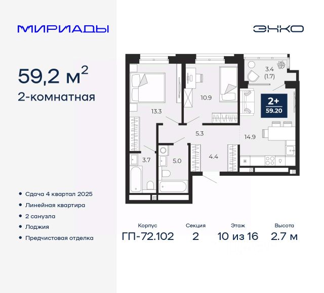 Дом монолитный, трехподъездный, переменной этажности, от 14 до 23 этажей. Квартира находится в 1-й секции высотой 23 этажа в корпусе 206. На этаже 8 квартир. В подъезде 1 пассажирский и 1 грузовой лифт. Окончание строительства - 4 квартал 2025 года. Оформление сделки по договору долевого участия.