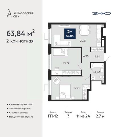 Продается двухкомнатная квартира с предчистовой отделкой в ЖК "Мириады" на 11 этаже. Общая площадь: 57.9 кв.м., жилая: 25.7 кв.м., площадь просторной кухни-столовой: 15.2 кв.м. Комнаты изолированные, все окна выходят на одну сторону. В квартире одна лоджия, два совмещенных санузла. Высота потолков 2.7 м. Дом монолитный, многоподъездный, переменной этажности, от 14 до 16 этажей. Квартира находится в 4-й секции высотой 16 этажей в корпусе ГП-72.102. На этаже 6 квартир. В подъезде 1 пассажирский и 1 грузовой лифт. Строительство завершено, дом сдан в 4 квартале 2025 года. Оформление сделки по договору купли-продажи. Вселенная бесконечных историй. Ранее невиданный Тюмени масштаб: территория 240 гектаров и 1 650 000 м² застройки. Мириады это город масштабных перемен и больших возможностей. Город зеленых рощ и зеркальных озер. Город для работы, учебы и развлечений. Город для детей и их родителей. Город для всех и каждого. Проект расположен в районе Мыс рядом с ТРЦ "Тюмень Сити Молл" в границах улицы Тимофея Чаркова, Тобольского тракта и объездной дороги. Срок полного освоения территории - до 2034 года. #Z6Te5U