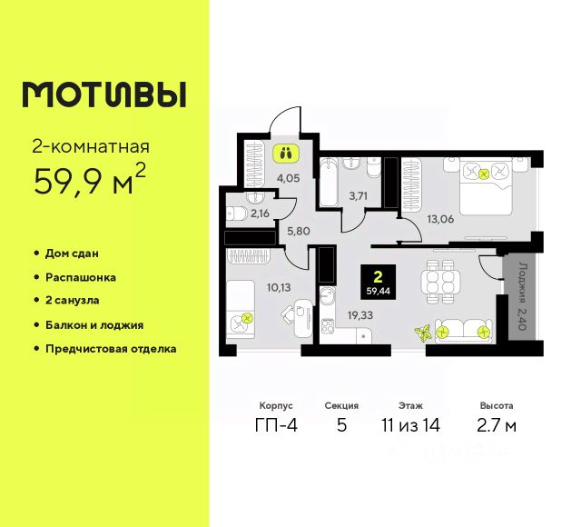 Продаётся квартира площадью 48.6 м2 в жилом комплексе "Айрис". Квартира находится на 11 этаже, жилая площадь квартиры 20.8 м2, площадь просторной кухни — 16.5 м2. Среди особенностей планировки — изолированные комнаты с окнами на одну сторону, 1 совмещённый санузел. Срок сдачи — III кв. 2027 "Айрис" — Смарт-квартал для активной и комфортной жизни "Айрис" расположен в новом экологически чистом районе Комарово Парк — локации без промышленного прошлого,в окружении трёх зелёных парков, до которых можно дойти за 10 минут. Здесь свежий воздух, природа и тишина сочетаются с городским комфортом. Рядом вся ключевая инфраструктура: ТРЦ "Колумб" и "Кристалл", Гимназия 4, Академия спорта, детские сады 60 и 95. Смарт-архитектура обеспечивает хорошие виды и естественное освещение. Разновысотная застройка формирует ощущение открытого пространства, а панорамные окна наполняют квартиры светом. Дворы без машин — безопасные игровые и спортивные зоны, зелёные пространства, места для отдыха и спорта. Большой выбор планировок — от студий до трёхкомнатных квартир, а также редкие форматы: террасы, зимние сады и сити-хаусы. Дополнительные удобства — кладовые на этажах, лаундж-парадные, два наземных паркинга. Продуманная транспортная доступность Благодаря продуманной транспортной доступности "Айрис" одинаково удобен и для автомобилистов, и для тех, кто пользуется общественным транспортом. Район остаётся тихим, при этом сохраняется связь с основными направлениями города: • 2025 минут до центра Тюмени • 67 минут до объездной дороги • 5 минут до Московского тракта Смарт-пространство для жизни без компромиссов "Айрис" предлагает продуманные пространства, которые поддерживают комфортный и активный образ жизни. На крышах паркингов размещены лайфстайл-зоны: площадки для тренировок, кинотеатр под открытым небом, зелёные террасы для йоги и отдыха — всё, что нужно для активной городской жизни рядом с домом. Максимум света и воздуха в каждой квартире Пространственные решения усиливают ощущение простора: • панорамные окна высотой 1,652,4 м; • витражные балконы и лоджии, расширяющие визуальные границы; • потолки от 2,72 м на типовых этажах до 4,62 м на первом. Многофункциональные крыши паркингов: новый уровень городской инфраструктуры Жители "Айрис" могут заниматься спортом, отдыхать и встречаться на свежем воздухе. — прямо на крышах паркингов. Здесь расположены: • воркаут-зона с тренажёрами и цифровыми программами тренировок — поддерживать форму можно рядом с домом; • кинотеатр под открытым небом, который летом становится центром вечерней жизни квартала; • зелёные террасы — тихие места для отдыха, чтения и встреч; • йога-терраса, где удобнее всего заниматься на рассвете и закате.