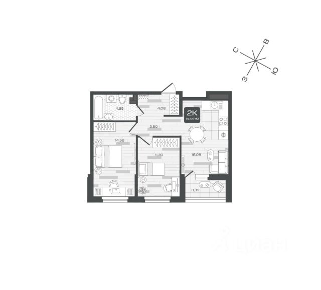 Продаётся квартира площадью 64.14 м2 в жилом комплексе "Дабл-Дабл". Квартира находится на 11 этаже дома, который будет введен в эксплуатацию во 2 квартале 2028 года. Жилая площадь квартиры 26.06 м2, площадь просторной кухни — 15.39 м2. Среди особенностей планировки — изолированные комнаты с окнами на одну сторону, 1 совмещённый санузел. Жилой комплекс "Дабл-Дабл" — это: проект комфорт-класса на Московском тракте дома высотой 15 этажей квартиры от 1-комнатных до 2-уровневых 1 очередь — срок сдачи IV кв. 2025 2 очередь — срок сдачи III кв. 2028 Окружение На границе жилого комплекса — живописный лес. Достаточно открыть окна, чтобы впустить в комнаты ароматы зелени, прохладу и чистый воздух. Благоустройство Юные жители оценят игровые площадки и воркаут-зоны. Любителям неспешных прогулок понравится 2-уровневый променад с панорамным видом и навесами. Лобби Помещения встречают дизайнерскими интерьерами с уютными лаунж-зонами, где удобно подождать курьера или просто сделать паузу перед возвращением домой. Колясочные Возвращайтесь налегке после прогулки с малышом — оставить коляску можно в специальном помещении на первом этаже. Кладовые Благодаря индивидуальным помещениям на техническом этаже сезонные и габаритные вещи будут на своём месте. 2-уровневые квартиры Просторная гостиная и кухня располагаются на первом этаже, спальня и кабинет — на втором. Почувствуйте, как жизнь выходит на новый уровень комфорта и приватности. Панорамное остекление Окна в пол наполняют комнаты светом и стирают границы между домом и природой. Встречайте рассветы или наслаждайтесь огнями вечернего города. Отделка Ровные стены, подготовленные полы и проведённые коммуникации — мы взяли на себя самые грязные и трудоёмкие этапы ремонта. Квартира станет чистым холстом, где легко создать интерьер в любом стиле.
