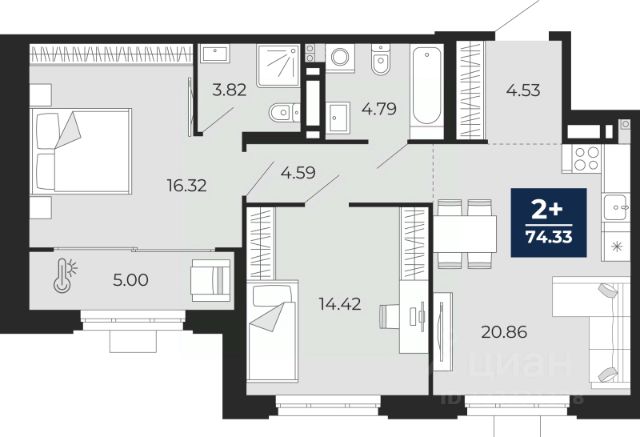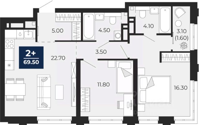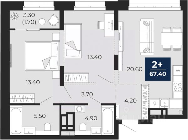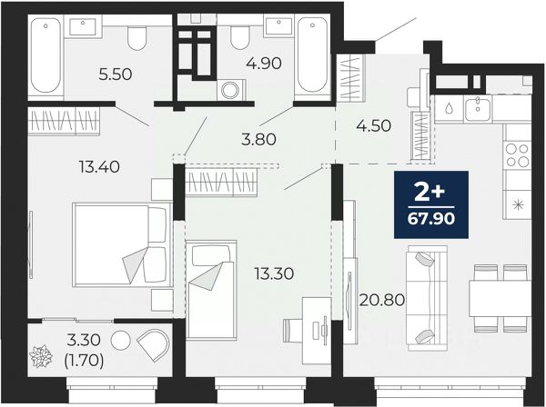 Продается двухкомнатная квартира с предчистовой отделкой в ЖК "Окинава" на 12 этаже. Общая площадь: 67.98 кв.м., жилая: 29.3 кв.м., площадь просторной кухни-столовой: 13.83 кв.м. Угловая квартира, очень светлая, естественная вентиляция при открытии окон. В квартире одна лоджия, один совмещенный и один раздельный санузел. Высота потолков 2.7 м.