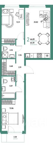 2-комн. квартира с предчистовой отделкой в ЖК "Мириады" на 12 этаже. Общая площадь: 54.3 кв.м., жилая: 23.2 кв.м., площадь просторной кухни-столовой: 14.2 кв.м. Квартира угловая, окна oбecпeчивaют paвнoмepнoe ocвeщeниe в тeчeниe дня. В квартире одна лоджия, один совмещенный и один раздельный санузел. Высота потолков 2.7 м. Квартира находится в корпусе ГП-72.101. Дом монолитный, одноподъездный, высотой 25 этажей. На этаже 8 квартир. В подъезде 2 пассажирских и 1 грузовой лифт. Окончание строительства - 4 квартал 2025 года. Оформление сделки по договору долевого участия. Вселенная бесконечных историй. Ранее невиданный Тюмени масштаб: территория 240 гектаров и 1 650 000 м² застройки. Мириады это город масштабных перемен и больших возможностей. Город зеленых рощ и зеркальных озер. Город для работы, учебы и развлечений. Город для детей и их родителей. Город для всех и каждого. Проект расположен в районе Мыс рядом с ТРЦ "Тюмень Сити Молл" в границах улицы Тимофея Чаркова, Тобольского тракта и объездной дороги. Срок полного освоения территории - до 2034 года. #zm8eBW