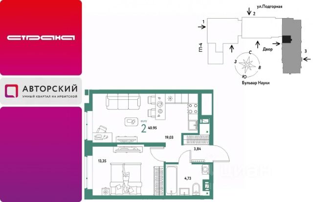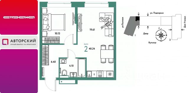 Новая квартира в ЖК "Авторский" напрямую от федерального застройщика "Страна Девелопмент". Продается 2комнатная квартира на 12 этаже от застройщика Страна Девелопмент. Площадь квартиры 40,77 кв. м. Жилой комплекс "Авторский" — квартал для авторов своей жизни от федерального застройщика "Страна Девелопмент" вблизи исторического центра — до Моста Влюблённых 4 минуты на авто, а ещё рядом ведущие вузы Тюмени. ПРЕИМУЩЕСТВА - Тематический бульвар объединяет дома и закрытые дворы квартала в единую экосистему: зелень, перголы для отдыха, детские и спортивные площадки. По вечерам бульвар преображается: освещение создаёт уютную атмосферу. - Новый детский сад рядом, который появится в 2026 году прямо в одном из корпусов комплекса. В нём выделено 150 мест для малышей. - Во дворах нет машин, шума, выхлопных газов и посторонних людей. Всё пространство разделено на зоны по интересам и возрастам. Для детей — игровые площадки из эко-материалов и мягкая защита от падений. Для взрослых — зоны отдыха, воркаут-площадки и тропинки для неспешных прогулок. ОТДЕЛКА Квартиры сдаются с предчистовой отделкой: произведена разводка электричества и отопления, выполнена стяжка пола, стены выровнены "под маяк", установлены розетки, выключатели и радиаторы. ДИЗАЙНЕРСКАЯ ОТДЕЛКА При покупке квартиры в ЖК "Авторский" можно включить стоимость ремонта в ипотеку. Пять вариантов на выбор: хлопковая нить, серый шторм, белый камень, шалфей, голубой вереск. СПОСОБЫ ПОКУПКИ Сотрудники "Страна Девелопмент" будут сопровождать вас на каждом этапе сделки, помогут получить одобрение по ипотеке или снизить ежемесячный платеж. - ипотека - рассрочка - с использованием материнского капитала -100% оплата наличными Цены на квартиры указаны без учета скидок. На консультации менеджер подскажет, какие акции действуют, и как получить одобрение по ипотеке с низкой ставкой.