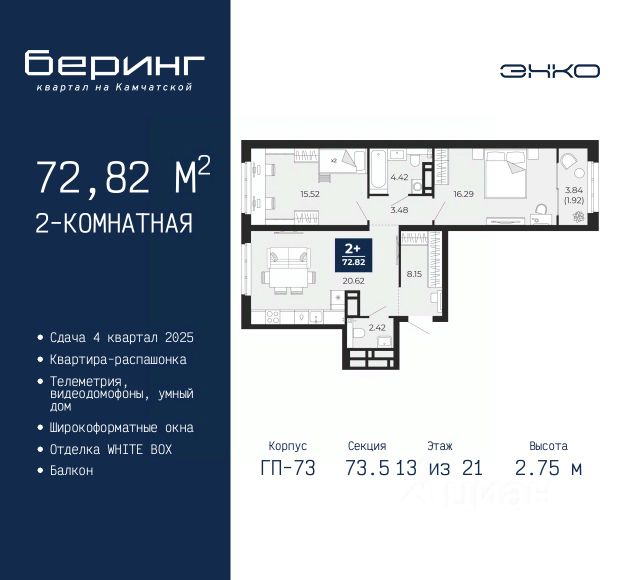 Квартира в евроформате с кухней-гостиной и второй спальней. В одной из комнат выход на лоджию с угловым панорамным остеклением. Он с окнами в пол — будет больше света. В холле ниша под шкаф и установку обувницы. В квартире предчистовая отделка: стены оштукатурены и выровнены по общему уровню, на полу слой цементно-песчаного раствора с дополнительным гидроизоляционным слоем в ванной. Проведена электрика и готовы розетки с выключателями. А ещё установлены сейф-двери и счётчики с телеметрией. Это не чистовая отделка, но во время ремонта будет меньше пыли. Вокруг много школ и детских садов, есть качественные клиники и большой парк для прогулок. Детские и спортивные площадки в закрытых дворах. Для машин продуман крытый паркинг для автомобилей. Он в 6 минутах ходьбы. Способы покупки: — ипотечные программы — обмен вашего жилья на новую квартиру — дистанционная покупка Узнать дополнительную информацию и записаться на встречу в офисе продаж можно по номеру, указанному в объявлении. Купить 2-комнатную квартиру на 13 этаже в Тюменской области.
