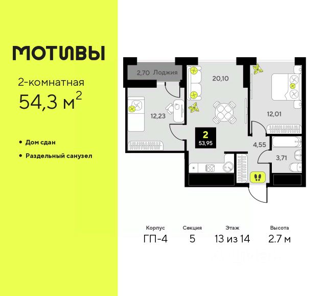 2-комн. квартира с предчистовой отделкой в ЖК "Дивный квартал у озера" на 13 этаже. Общая площадь: 59.2 кв.м., жилая: 30.7 кв.м., площадь просторной кухни-столовой: 11.6 кв.м. Квартира без проходных комнат, окна выходят нa три cтopoны дома. В квартире одна лоджия, один раздельный санузел. Высота потолков 2.7 м. Квартира будет сдаваться с предчистовой отделкой White Box: выровнены и оштукатурены стены, проведено электричество и отопление, установлены радиаторы. Вы также можете приобрести квартиру с ремонтом от застройщика, представленным в трех цветовых решениях Scandi, Wood и Coffee и включающим: ламинат, обои под покраску, двери, натяжной потолок, санузел с сантехникой. При желании вы можете заказать отделку под ключ, варианты возможных решений представлены в альбоме фотографий. Дом монолитный, черырехподъездный, переменной этажности, от 7 до 23 этажей. Квартира находится в 3-й секции высотой 17 этажей в корпусе ГП-4. На этаже 5 квартир. В подъезде 1 пассажирский и 1 грузовой лифт. В настоящее время строительство завершено, дом сдан в 4 квартале 2025 года. Оформление сделки по договору купли-продажи. "Дивный квартал у озера" современный жилой квартал, удобно расположенный в 10-ти минутах от центра Тюмени, в уютном районе рядом с зеленым массивом и озером Алебашево. Комплекс находится между улицами Мельникайте и Алебашевская, что обеспечивает его хорошую транспортную доступность до центра на автомобиле всего 10 минут. Рядом с комплексом расположен Лесопарк имени Гагарина, экзотический Парк дружбы между Россией и Республикой Корея. "Дивный квартал у озера" объединяет архитектуру современной городской застройки и природную эстетику. Уютные дворы жилого комплекса будут не только безопасными, но и тихими. Закрытая территория надёжно защищена от шума и посторонних глаз. Здесь будут места для отдыха, детские площадки, зоны для выгула собак. В холлах первого этажа расположены мягкая зона ожидания, общественные санузлы и просторная колясочная. Квартал будет располагать богатой инфраструктурой: на первых этажах домов разместятся магазины, пекарни, кофейни, пункты выдачи, аптеки, детские центры, цветочные салоны и многое другое, что сделает жизнь поистине комфортной. В комплексе есть теплый подземный паркинг и кладовые. #Zm9AA9 Купить 2-комнатную квартиру на 13 этаже в Тюменской области.