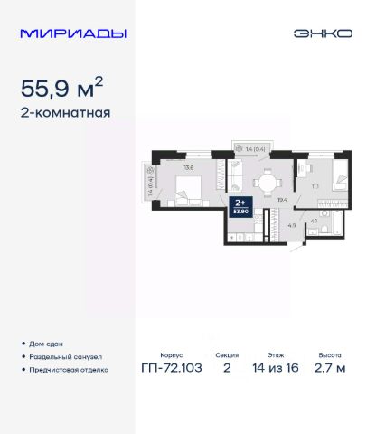 Дом монолитный, многоподъездный, переменной этажности, от 17 до 24 этажей. Квартира находится в 5-й секции высотой 19 этажей в корпусе ГП-75. На этаже 4 квартиры. В подъезде 2 пассажирских и 1 грузовой лифт. Окончание строительства - 4 квартал 2027 года. Оформление сделки по договору долевого участия.