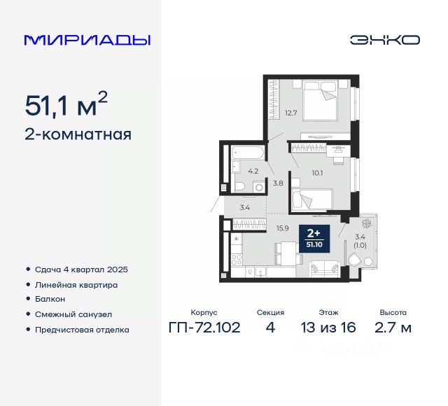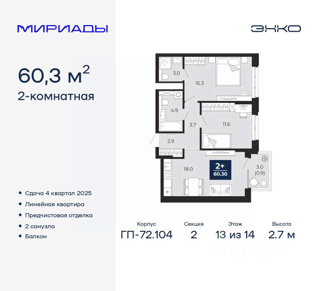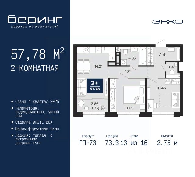 • ✓ В базе Циан 99 2-комнатных квартир на 13 этаже в округе Ленинский в городе Тюмень