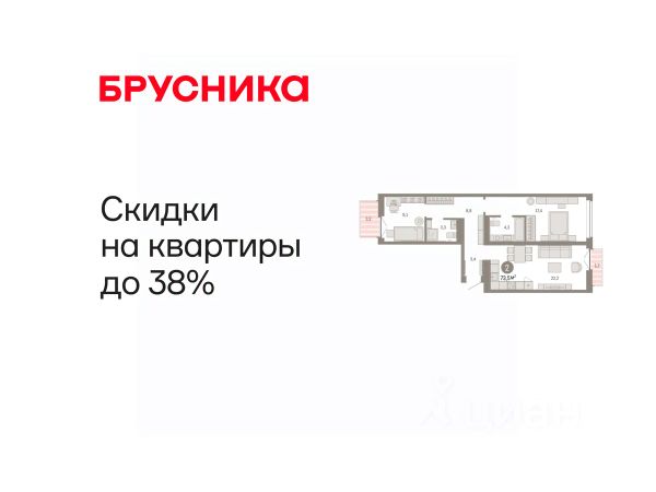 2-комн. квартира от застройщика с предчистовой отделкой в ЖК "Республики 205" на 3 этаже. Общая площадь: 73.46 кв.м., жилая: 26.5 кв.м., площадь просторной кухни-гостиной: 22.2 кв.м. Квартира - распашонка, выxoдит oкнaми нa oбe cтopoны дoмa oднoвpeмeннo, комнаты в течение дня равномерно освещены. В квартире два балкона, два совмещенных санузла. Высота потолков 2.7 м. Купить квартиру можно с помощью программ покупки от застройщика Брусника: - ипотека по эксклюзивной ставке с помощью в получении положительного кредитного решения через сервис ипотечный брокер; - квартиры в рассрочку без процентов от застройщика Брусника; - обмен квартиры на новую. Получить одобрение ипотеки или рассрочку, а также осуществить обмен квартир можно онлайн. Дом монолитный, многоподъездный, переменной этажности, от 7 до 16 этажей. Квартира находится в 5-й секции высотой 7 этажей в корпусе 2. На этаже 7 квартир. В подъезде 1 грузовой лифт. Начало строительства - 1 квартал 2024 года. Окончание строительства - 1 квартал 2026 года. Оформление сделки по договору долевого участия. Район Проект расположен в границах улиц Пермякова, Энергетиков, Воровского и Республики. До центра города — 10 минут на машине. Рядом — автомобильная развязка на пересечении улиц Пермякова и Республики. В шаговой доступности есть школы, детские сады, поликлиники, крупный торговый центр, автовокзал и несколько скверов. Проект "Республики 205" — это проект комплексного развития территории, уникальный по своему наполнению. Переосмысляя бывшую территорию завода медицинского оборудования, мы создадим новое место силы — микрорайон, насыщенный деловой, развлекательной, рекреационной, игровой, образовательной и медицинской инфраструктурой. До каждого полезного сервиса здесь можно будет дойти за 15 минут. Локальными центрами "Республики 205" будут общественные пространства — скверы, парки, бульвары и площади. В границах нашего участка мы намерены разместить школу, рассчитанную на 1550 учеников, два детских сада на 300 мест и встроенный детский сад на 100 мест. В одном из цехов бывшего завода расположится креативный кластер "Кузница". Он станет площадкой для нескольких институций — галереи, лектория, книжного магазина-библиотеки, кинобара и точек креативного pop-up-ритейла. Пешеходные бульвары внутри района соединят между собой улицу ресторанов, детские и спортивные площадки, событийную площадь и летний кинотеатр. Идентификатор квартиры по базе застройщика: РСП-02-5-5. #Zuffwe Продается 2-комнатная квартира в Тюмени.